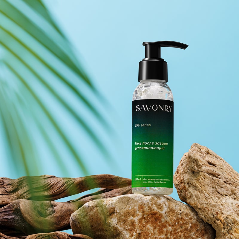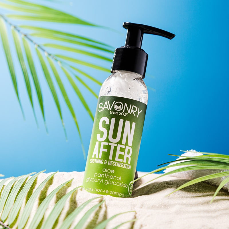 Гель после загара Savonry восстанавливает, успокаивает и охлаждает кожу после пребывания на солнце. Пантенол регенерирует кожные покровы и устраняет дискомфортные ощущения из-за полученных ожогов. Сок листьев алоэ вера оказывает мощное заживляющее и успокаивающее действие. Глицерил глюкозид - компонент из экстремофильных микроорганизмов, известных своей особенностью выживать в экстремальных неблагоприятных условиях, глубоко увлажняет кожные покровы и оказывает омолаживающее действие по отношению к коже.