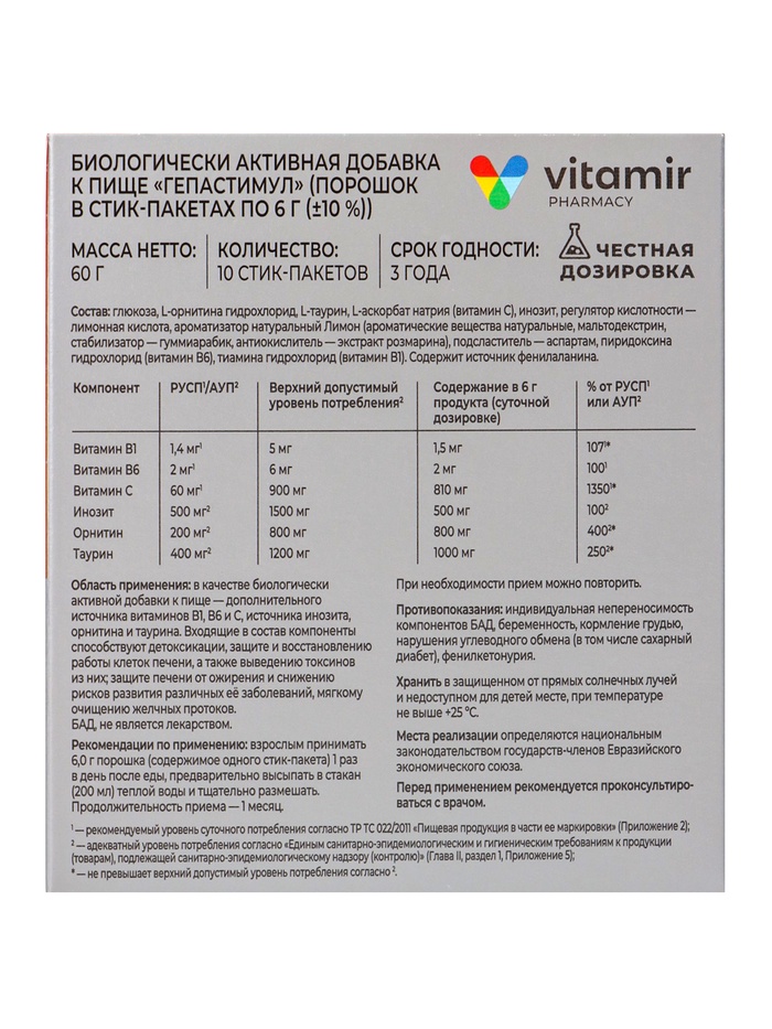 Производитель: ВИТАМИР; Габариты: 10,5 x 9,5 x 4; Страна: Россия; В боксе: 54 шт; Состав: См. на упаковке; Материалы: см. на упаковке; Фасовка: по 1 шт; Индивидуальная упаковка: Цветная коробка; Сертификат: ЕАС; Для кого: Унисекс; В упаковке, шт.: 10; Возраст: Для взрослых; Группа витаминов: Витамины C, Витамины B; Форма выпуска: Порошок; Показания: После курса антибиотикотерапии, Защита и восстановление клеток печени; Действие: Детоксикация, Общеукрепляющее