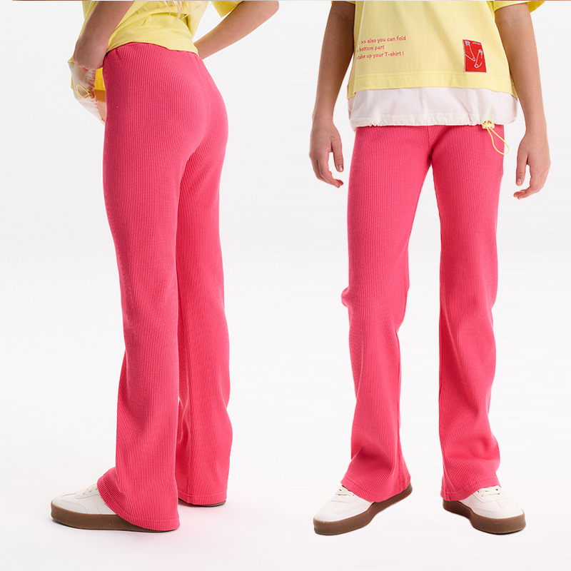 Состав: 95%хлопок 5%эластанОписание: Брюки клёш в рубчик для девочки. Одна из наиболее актуальных моделей сезона — штаны, плотно прилегающие на бёдрах и расклешённые от колена — леггинсы-клёш. Широкая резинка в поясе не давит и не перекручивается. Изделие лаконичного дизайна, без принта. За брюками легко ухаживать. В составе ткани (эластичный кашкорсе) преобладает высококачественный хлопок. Благодаря эластану изделие хорошо тянется и при этом сохраняет отличную форму в течение длительного времени.