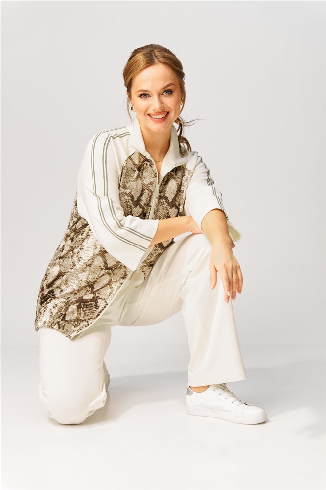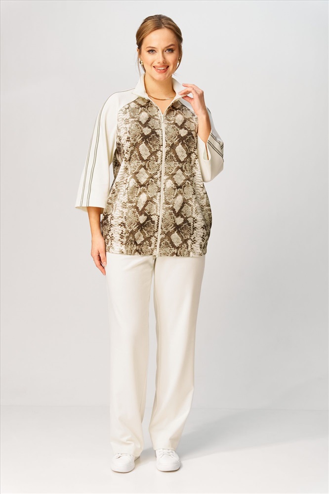 Страна производитель: Республика Беларусь Комплектация: Брюки, Джемпер Сезон: Демисезон Коллекция: Весна, Весна 2025 Стиль: На каждый день Цвет: молочный олива питон Материал: трикотаж Состав: ПЭ-74%, вискоза - 23%, спандекс -3% Рост: 164 см Адрес изготовителя: 224011 г. Брест, ул. Центральная, 6 Описание: Костюм состоит из джемпера и брюк. Джемпер свободного силуэта выполнен из трикотажной ткани двух видов. Перед с застежкой на двусторонней разъемной молнии. Рукав реглан с декоративной тесьмой. Воротник стойка. Низ джемпера на резинке. В боковых швах карманы. Брюки прямые из трикотажной ткани сверху на резинке. В боковых швах карманы. Длина джемпера - 70 см, длина рукава - 56 см, длина брюк -106 см. Комментарии к товару