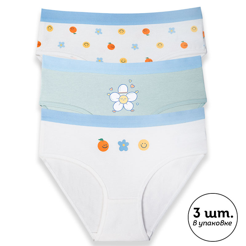 Состав: низ: 93%хлопок 7%эластан, низ2: 93%хлопок 7%эластан, низ:3 93%хлопок 7%эластанОписание: При выборе белья для своего ребёнка каждая мама хочет быть уверена в его качестве и в том, что ребёнку будет комфортно. Комплект трусов для девочки (3 шт.) полностью соответствует этим требованиям. Слипы средней посадки выполнены из ткани с высоким содержанием хлопка — модель мягкая, прекрасно пропускает воздух, давая коже ребёнка дышать. Благодаря эластану в составе изделие надолго сохраняет отличную форму, даже после многочисленных стирок. Качественная ткань и анатомически правильный крой обеспечивают идеальную посадку на теле — ребёнку комфортно на протяжении всего дня. Мягкая резинка исключает раздражение и трение. Трусы детские для девочки представлены в трёх актуальных вариантах расцветки: белые со сплошным принтом в виде цветочков, смайликов и улыбающихся мандаринов, зелёные с принтом в виде улыбающейся ромашки и белые с небольшим принтом в виде улыбающегося мандарина, цветочка и смайлика. Принты эластичные и стойкие, отлично переносят частые стирки. В линейке представлены хлопковые трусы следующих размеров: 1 (86): 2 (92): 3 (98): 4 (104): 5 (110): 6 (116): 7 (122): 8 (128): 9 (134): 10 (140): 11 (146). Модель подходит девочкам дошкольного возраста, девочкам младшего школьного возраста и девочкам-подросткам. Трусы слипы для девочки — идеальный выбор детского белья для повседневной носки. Модные трусы станут хорошим подарком дочери или внучке на любой праздник. Выбирайте нужный размер по таблице размеров на фото. Цвет товара на экране вашего устройства может отличаться от цвета изделия вживую. Товар возврату и обмену не подлежит.