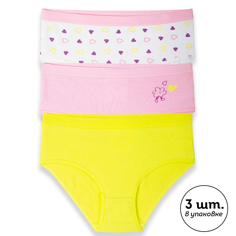 Состав: низ: 93%хлопок 7%эластан, низ2: 93%хлопок 7%эластан, низ:3 93%хлопок 7%эластанОписание: При выборе белья для своего ребёнка каждая мама хочет быть уверена в его качестве и в том, что ребёнку будет комфортно. Комплект трусов для девочки (3 шт.) полностью соответствует этим требованиям. Слипы высокой посадки выполнены из ткани с высоким содержанием хлопка — модель мягкая, прекрасно пропускает воздух, давая коже ребёнка дышать. Благодаря эластану в составе изделие надолго сохраняет отличную форму, даже после многочисленных стирок. Качественная ткань и анатомически правильный крой обеспечивают идеальную посадку на теле — ребёнку комфортно на протяжении всего дня. Мягкая резинка исключает раздражение и трение. Трусы детские для девочки представлены в трёх актуальных вариантах расцветки: зелёный (трендовый оттенок лайма), белый в мелкие разноцветные сердечки и розовый с небольшим принтом в виде забавной ромашки с ножками и сердечек. Принт эластичный и стойкий, отлично переносит частые стирки. В линейке представлены хлопковые трусы следующих размеров: 1 (86): 2 (92): 3 (98): 4 (104): 5 (110): 6 (116): 7 (122): 8 (128): 9 (134): 10 (140): 11 (146). Модель подходит девочкам дошкольного возраста, девочкам младшего школьного возраста и девочкам-подросткам. Трусы слипы для девочки — идеальный выбор детского белья для повседневной носки. Модные трусы станут хорошим подарком дочери или внучке на любой праздник. Выбирайте нужный размер по таблице размеров на фото. Цвет товара на экране вашего устройства может отличаться от цвета изделия вживую. Товар возврату и обмену не подлежит.