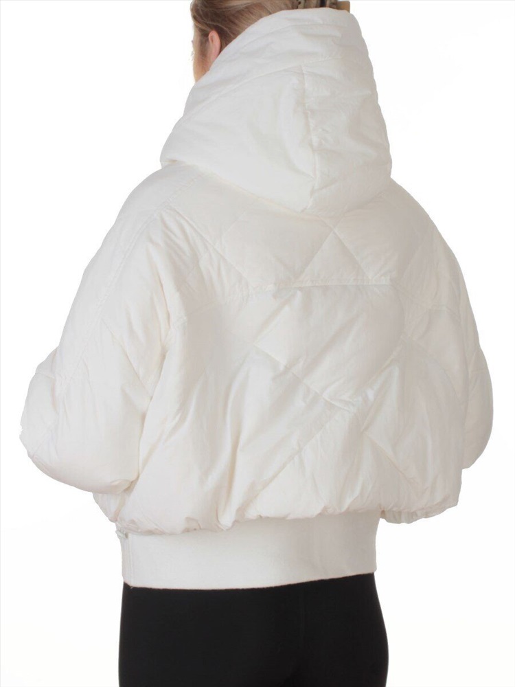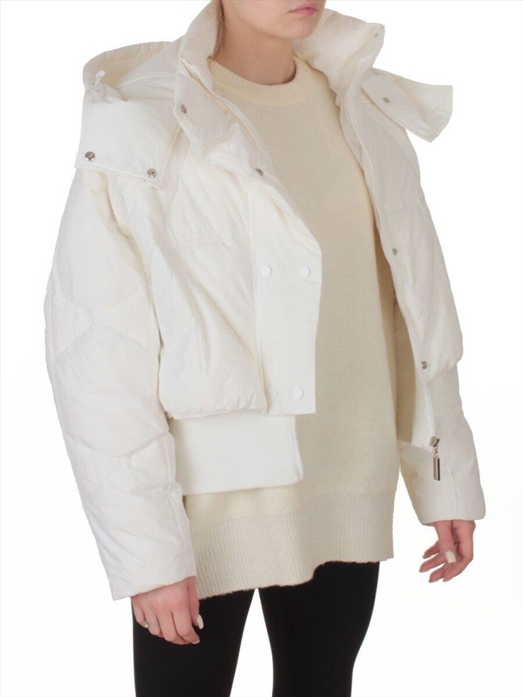 Кол-во в упаковке: 1 Куртка пуховая зимняя женская (пух) Модель сезона: зима Артикул: H24-033 WHITE Дополнительная информация: Модель свободного кроя. Плотность ткани: ткань легкая. Рукава - летучая мышь. Центральная застежка на молнию. Ветрозащитный клапан на кнопках. Два втачных кармана спереди. Капюшон несъемный с регулировочной резинкой и фиксаторами с застежкой на кнопках. Воротник стойка. Трикотажная манжета по подолу куртки. Регулировочная резинка с фиксаторами повыше трикотажной манжеты, с возможностью регулировки. Фото сделано на модели размера 44/46: Рост модели 175 см., объем груди 90, талия 70, бедра 98. Витринный образец размера 44/46 российский: Длина спины: 55 см. Объем талии: 100 см. Длина плеча + рукав: 74 см. Материал верха: 100% нейлон. Подкладка: 100% нейлон. Утеплитель: 80% пух, 20% перо. Размеры указанные на куртке и соответствие российским стандартам: Свободный 44/46 российский Комментарии к товару
