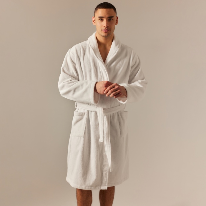 Производитель: Sima-Land Home; Габариты: 41 x 29 x 10; Страна: Армения; В боксе: 12 шт; Состав: Хлопок 100%; Материалы: хлопок; Фасовка: по 1 шт; Сертификат: ЕАС; Цвет: Белый; Для кого: Для мужчины; Назначение: Домашняя; Ткань: Хлопковая ткань; Рост, см: 170; Сезон: Всесезонный; Вид застёжки: Пояс; Тематика: Однотонная; Декоративные элементы: Без элементов; Покрой: Свободный; Тип карманов: Накладной; Рекомендации по уходу: Стирка при 40 °С, Не отбеливать, Глажка при 110 °С, Деликатный режим отжима; Состав ткани: Хлопок; Обхват талии, см: 78 - 81; Длина изделия по спинке, см: 110; Обхват груди, см: 88 - 91; Обхват бёдер, см: 94 - 97; Фиксированная цена: Да