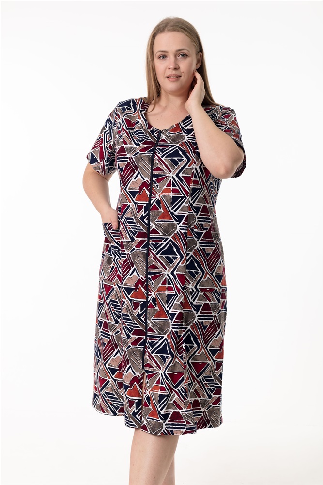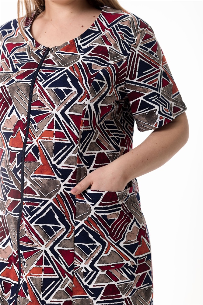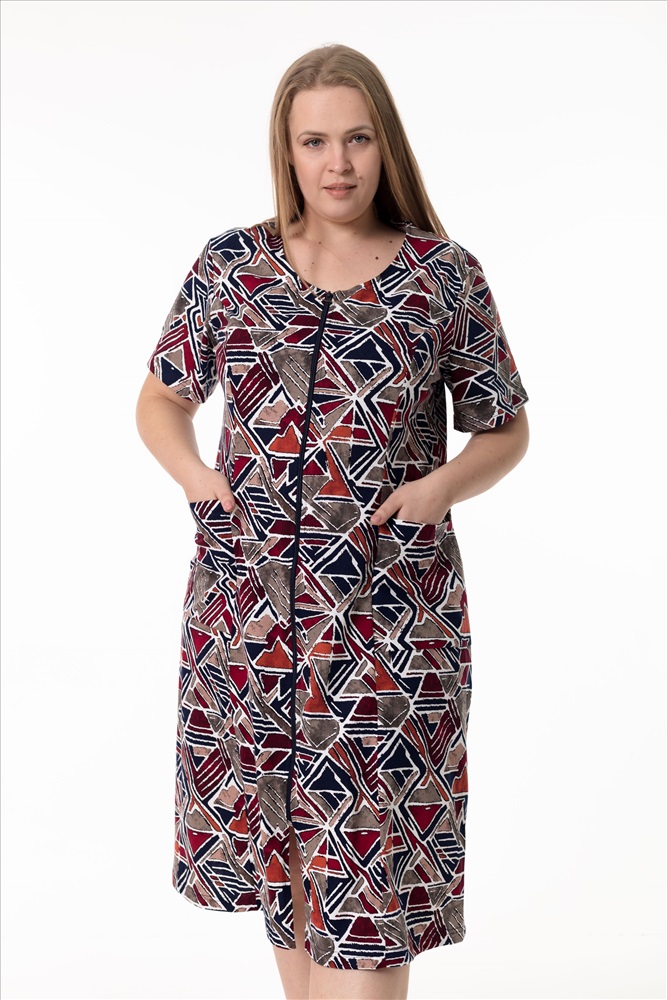 Тип длинны (для платьев): Миди Вид ткани: Кулирка Застежка: Молния С карманами: Да Сезон: Всесезонный Состав: Хлопок 100% Цвет Номенклатуры: коричневый/синий Халат выполнен из мягкого хлопкового полотна и отлично подойдёт для комфортного домашнего отдыха. Модель с коротким рукавом застёгивается на центральную молнию, обеспечивая удобство при носке. По бокам расположены карманы, добавляющие изделию практичности и функциональности. Комментарии к товару