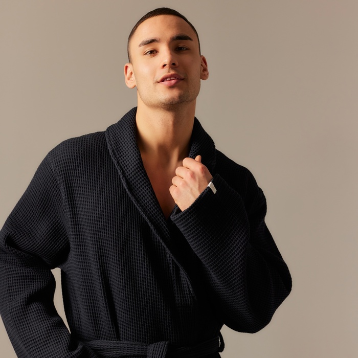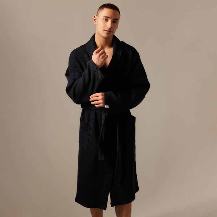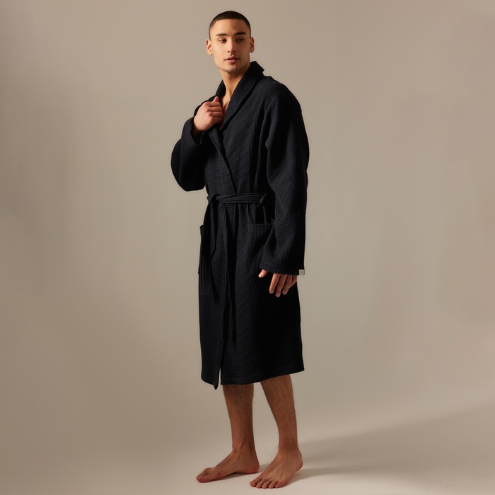 Производитель: Sima-Land Home; Габариты: 41 x 31 x 5; Рост, см: 170 - 173; Сезон: Зима, Лето, Всесезонный, Демисезон; Рекомендации по уходу: Не отбеливать, Барабанная сушка при низкой температуре, Глажка при 110 °С, Стирка при 40 °С; Обхват талии, см: 78 - 81; Длина изделия по спинке, см: 110; Обхват груди, см: 88 - 91; Обхват бёдер, см: 94 - 97; Страна: Армения; В боксе: 23 шт; Состав: Хлопок 100%; Материалы: хлопок; Фасовка: по 1 шт; Сертификат: ЕАС; Цвет: Чёрный; Для кого: Для мужчины; Назначение: Домашняя; Ткань: Вафельное полотно; Плотность, г/м²: 300; Вид застёжки: Пояс; Тематика: Однотонная; Декоративные элементы: Нашивка; Тип карманов: Накладной; Состав ткани: Хлопок; Фиксированная цена: Да