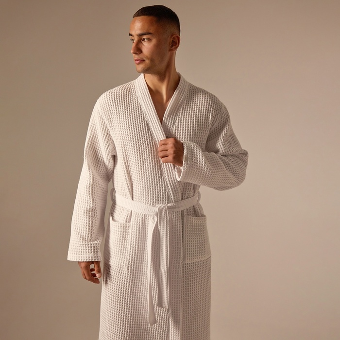 Производитель: Sima-Land Home; Габариты: 40 x 33 x 8; В боксе: 24 шт; Рост, см: 170; Вид застёжки: Без застёжки; Декоративные элементы: Без элементов; Рекомендации по уходу: Химчистка запрещена, Стирка при 40 °С, Не отбеливать, Глажка при 110 °С; Обхват талии, см: 78 - 81; Длина изделия по спинке, см: 110; Обхват груди, см: 88 - 91; Обхват бёдер, см: 94 - 97; Страна: Армения; Состав: Хлопок 100%; Материалы: хлопок; Фасовка: по 1 шт; Сертификат: ЕАС; Цвет: Белый; Для кого: Для мужчины; Назначение: Домашняя; Ткань: Вафельное полотно; Плотность, г/м²: 280; Сезон: Всесезонный; Тематика: Однотонная; Покрой: Прямой; Тип карманов: Накладной; Состав ткани: Хлопок; Фиксированная цена: Да