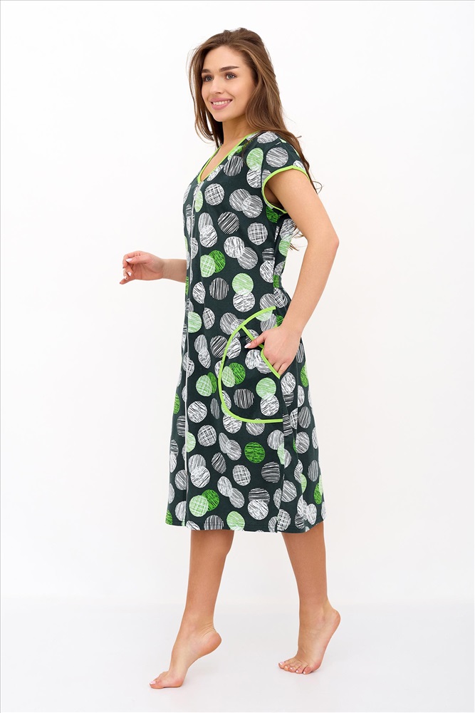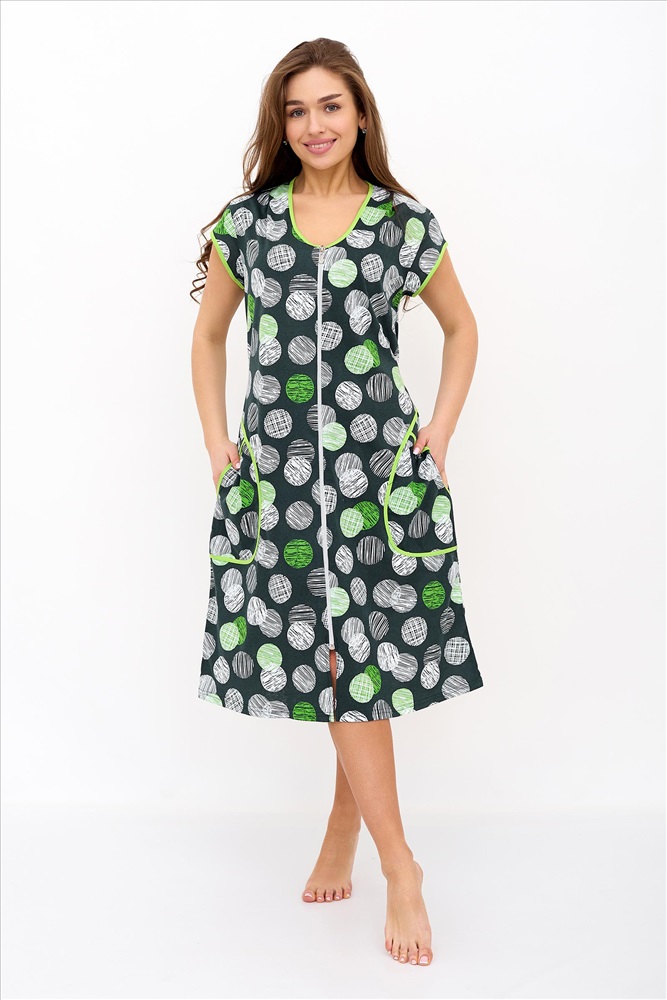 Состав: Хлопок 100% ГОСТ: 31409-2009 Цвет: Зеленый Изготовитель: ИП Вартанян Марина Валерьевна Торговая марка: Lika Dress Тип ткани: Кулирка Длина изделия: По спинке- 48/50-102,52/54-106,56/58-110 Для кого: для женщин Вид изделия: Халаты Сезонность: Весна - Лето ТН ВЭД: 6108910000 Женский домашний халат на молнии Пелагея. Свободный крой, короткие рукава, округлый вырез горловины, боковые кармашки – идеальный вариант для дома на каждый день. Халат отлично подойдет на дачу, в отпуск, беременным в роддом. Все просто и продумано до мелочей для Вашего удобства. Халат также станет отличным подарком маме, бабушке, сестре или подруге на любой праздник Комментарии к товару