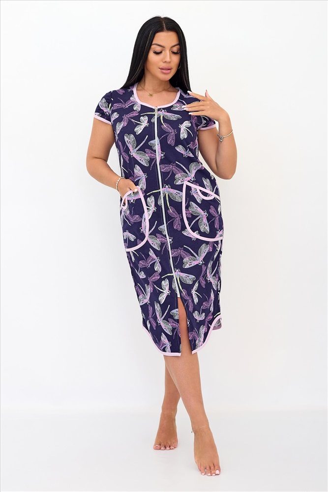 Состав: Хлопок 100% ГОСТ: 31409-2009 Цвет: Фиолетовый Изготовитель: ИП Вартанян Марина Валерьевна Торговая марка: Lika Dress Тип ткани: Кулирка Длина изделия: По спинке- 48/50-102,52/54-106,56/58-110 Для кого: для женщин Вид изделия: Халаты Сезонность: Весна - Лето ТН ВЭД: 6108910000 Домашний легкий халат Ромашки из 100% хлопка. Каждая девушка хочет выглядеть стильно и современно дома, на отдыхе, в гостях или больнице. Красивый халат с коротким рукавом без сомнения станет Вашей любимой домашней одеждой. Халат на молнии свободного кроя оверсайз подарит абсолютную легкость и комфорт. Мягкий халатик будет удобен на каждый день. Дополняют модель халатика накладные кармашки с интересным и необычным решением в виде петельки из канта на кармане. Комментарии к товару