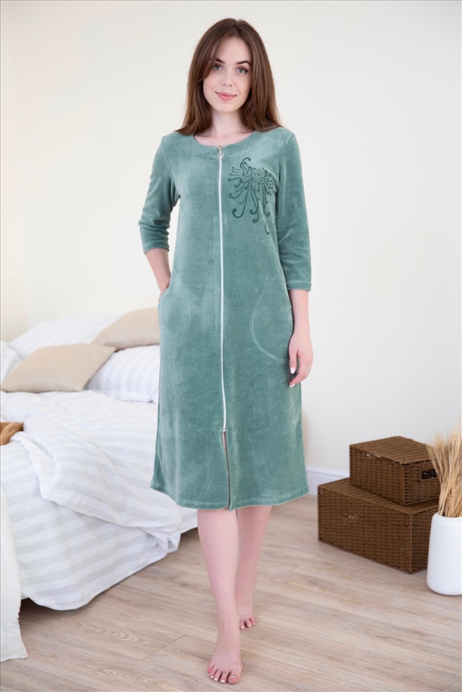 Состав: Хлопок 80%, П/Э 20% ГОСТ: 31409-2009 Цвет: Зеленый Изготовитель: ИП Вартанян Марина Валерьевна Торговая марка: Lika Dress Тип ткани: Велюр Длина изделия: По спинке-48/50 - 104 см, 52/54 - 105 см, 56/58 - 106 см, 60/62 - 107 см, 64/66 - 108 см Для кого: для женщин Вид изделия: Халаты Сезонность: Осень - Зима ТН ВЭД: 6108990000 Женственный и мягкий домашний велюровый халат Урсула на молнии. Приятный и удобный халат на каждый день. В нем очень удобно заниматься домашними делами или просто отдыхать. Длина до колена, рукава три четверти, кармашки, округлый вырез горловины – все в этой модели продумано до мелочей для Вашего удобства. Комментарии к товару