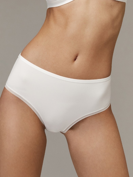 Трусы слипы средней посадки. Имеют проклеенный пояс и обработку из сетки по ножкам. Выполнены из нежной, эластичной сетки сзади и бархатистого материала спереди. Комфортная конструкция трусиков способствует созданию элегантной, утонченной эстетики, которая органично впишется в ваш повседневный гардероб.