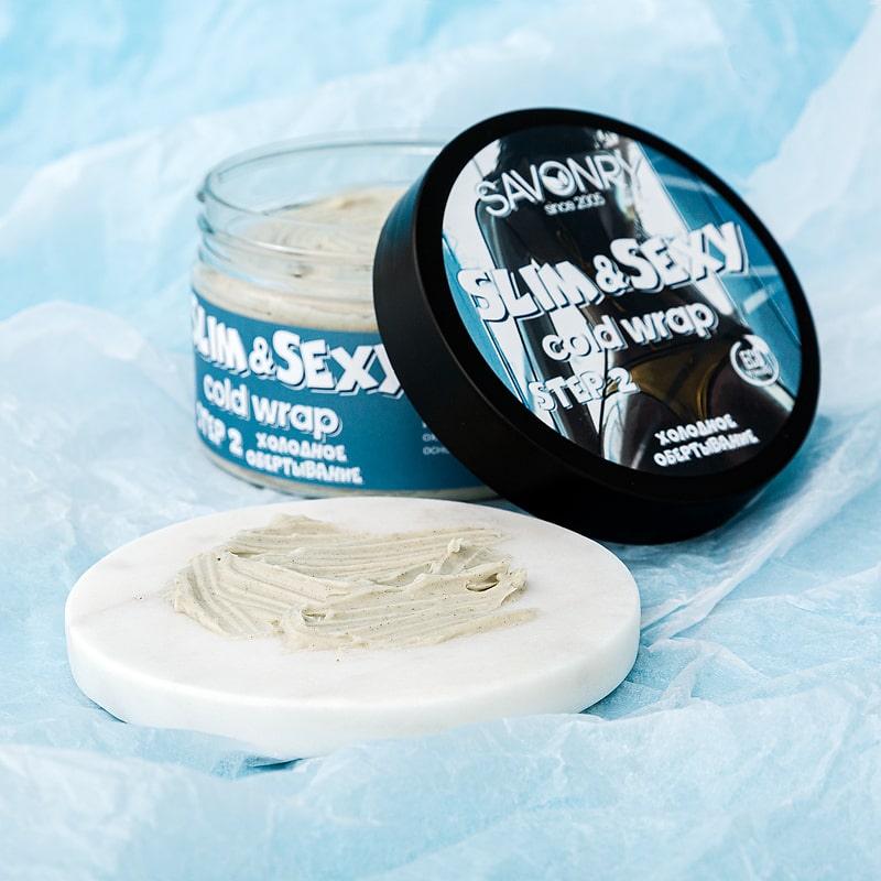 Состав: INCI- Aqua, Propylene Glycol, Kaolin (белая глина), Zeolite (природный минерал), Сetearyl Alcohol, Menthol, Glycerin, Helianthus Annuus (Sunflower) Seed Oil (масло подсолнечника), Prunus Amygdalus Dulcis (Sweet Almond) Oil (масло сладкого миндаля), Olea Еuropaea (Olive) Oil (масло оливковое), Sesamum Indicum (Sesame) Seed Oil (масло кунжутное), Niacinamide (витамин PP), Caffeine (кофеин), Xanthan Gum, Lecithin, Benzyl Alcohol, Ethylhexylglycerin, Spirulina Extract, Laminaria Digitata Extract, Fucus Vesiculosus Extract(экстракты спирулины, ламинарии и фукуса), Tocopheryl Acetate (витамин Е), Parfum. Советы по использованию: после применения скраба, нанесите средство на очищенную кожу «проблемных» зон равномерным густым слоем, избегая попадания на поврежденную и воспаленную кожу и слизистые оболочки. При желании оберните пищевой пленкой и выдержите 30-50 минут. После процедуры снимите остатки средства сухой салфеткой и осторожно смойтепрохладной водой. Перед использованием проведите тест на чувствительность. Хранить в темном прохладном месте, при температуре не выше 28 °С. Холодное обертывание SLIM&SEXY подтягивает и омолаживает кожу, усиливая отток лишней жидкости и активизируя обмен веществ. В результате мощного охлаждения ускоряется липолиз: организм начинает дополнительно расщеплять жиры в качестве резервного источника энергии для согревания. Шаг №2 с охлаждающим эффектом для проведения основной процедуры по уходу за кожей. Каолин, Цеолит (природный минерал) – очищение и детокс эффект. Ментол – охлаждает, стимулируя жиросжигание, снимает отечность, приводит кожу в тонус. Ниацинамид, кофеин – кровообращение и тургор. Экстракт спирулины, фукуса и ламинарии – обладают защитными и лечебными свойствами: уберегают от негативного влияния внешних факторов, восстанавливают потрескавшуюся и сухую кожу, избавляют от шелушения и чувства стянутости, повышает эластичность и упругость тканей. Комментарии к товару