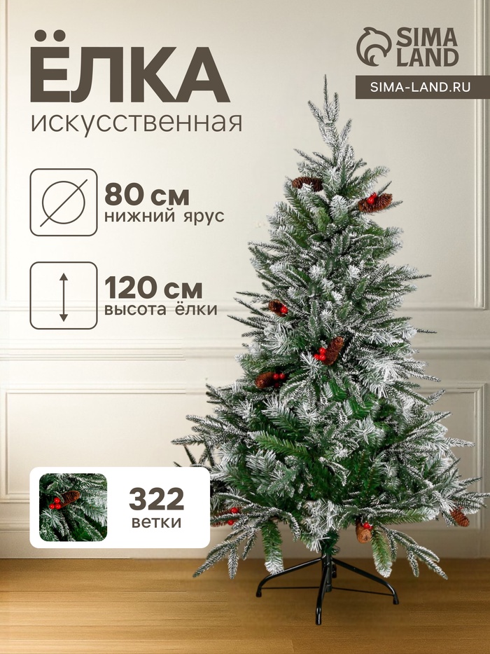 Производитель: Зимнее волшебство; Габариты: 70 x 20 x 20; Состав: Дерево, металл, пластик; Высота, см: 120; Диаметр нижнего яруса, см: 80; Материал: ПВХ, Металл, Пластик; Особенности декора: Шишки, Ягоды; Стиль: Ар-деко, Советский, Классика, Фьюжн, Шебби-шик, Скандинавский, Новогоднее барокко, Датский; Цвет декора: Красный, Белый; Страна: Китай; В боксе: 1 шт; Материалы: дерево, металл, пластик; Фасовка: по 1 шт; Индивидуальная упаковка: Картонная коробка; Сертификат: Не подлежит сертификации; Символ года: Нет; Тематика праздника: Новый год; Работает от сети: Нет; Тип ёлки: Напольная; Тип веток: Смешанные; Крепление веток: На крючках; Цвет хвои: Зелёный