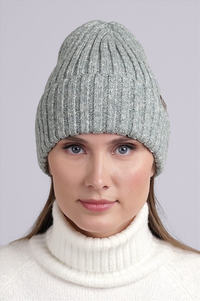 Шапка женская с отворотом, выполнена ластичным переплетением. Декорирована нашивкой логотип в височной зоне. Отлично подойдёт для холодной осени- тёплой зимы.