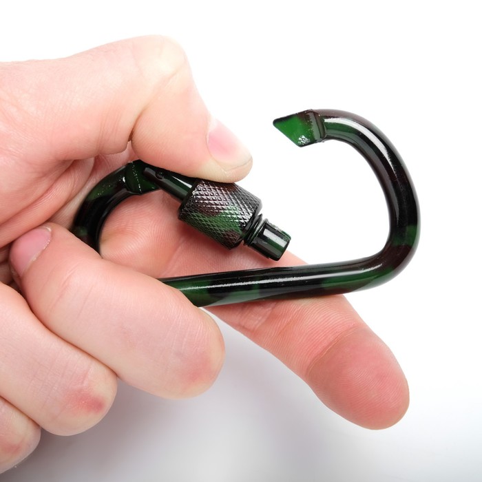 Карабин - универсальное устройство для крепления и фиксации снаряжения. Изделие может использования во время активного отдыха (поход, охота, рыбалка) в качестве подвеса или для быстрой замены сломавшегося фастекса на рюкзаке.
