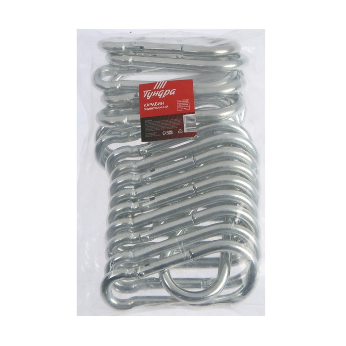 Производитель: ТУНДРА; Габариты: 14 x 6,5 x 1,3; Страна: Китай; В боксе: 100 шт; Состав: Металл; Материалы: металл; Фасовка: по 1 шт; Индивидуальная упаковка: Без упаковки; Габариты товара: 14 см × 5 см × 1 см; Сертификат: Не подлежит сертификации; Цвет: Хромированный; Диаметр, мм: 12; Длина, мм: 140; Гарантийный срок, мес.: 6; Maксимальная нагрузка, кг: 640; Вид карабина: Монтажный; Фиксированная цена: Да