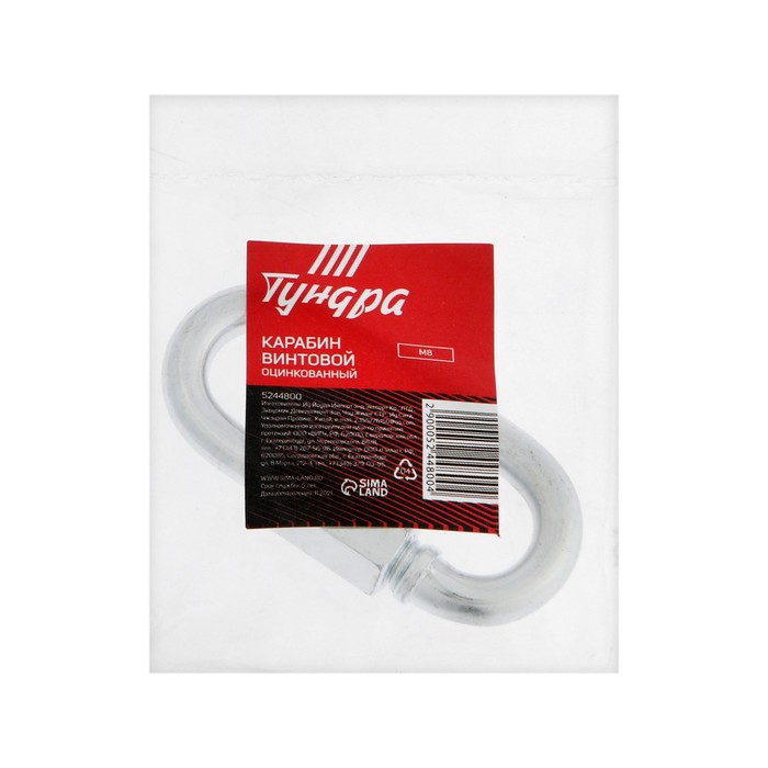 Производитель: ТУНДРА; Габариты: 7,5 x 4 x 1,3; Страна: Китай; В боксе: 500 шт; Состав: Металл; Материалы: металл; Фасовка: по 1 шт; Индивидуальная упаковка: Пакет; Габариты товара: 7,5 см × 3,7 см × 1,5 см; Сертификат: Не подлежит сертификации; Цвет: Хромированный; Диаметр, мм: 8; Гарантийный срок, мес.: 6; Maксимальная нагрузка, кг: 250; Вид карабина: Винтовой; Фиксированная цена: Да Карабин винтовой ТУНДРА krep изготовлен из высококачественного металла и оцинкован, что защищает его от коррозии. Данный крепеж необходим для быстрого соединения цепей и тросов между собой, а также для крепления их к различным конструкциям.