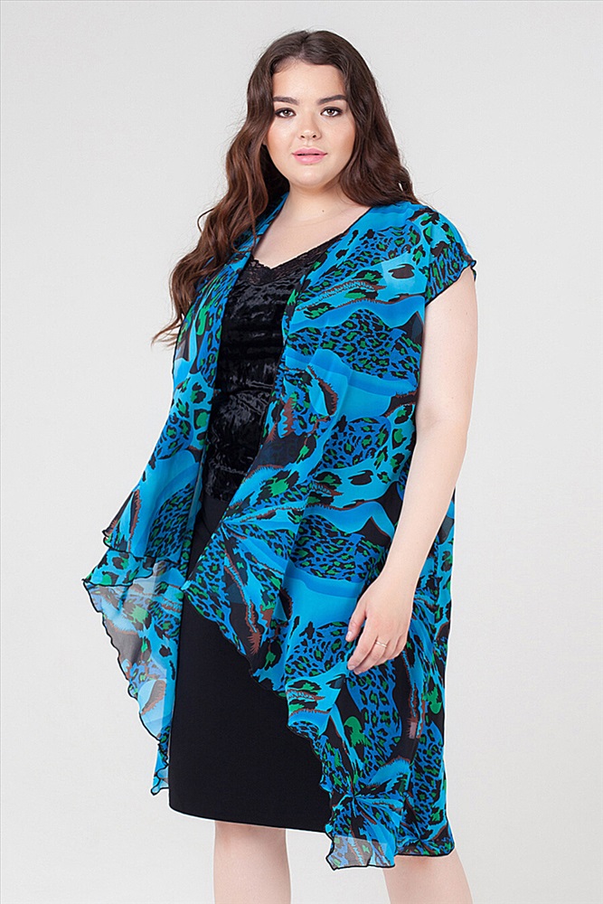 Лёгкий кардиган для гардероба Plus size. Модель свободной посадки, без рукава. Лёгкий летящий силуэт, мягкая драпировка - кардиган Шифон идеально подходит для создания эффекта многослойности без излишнего объема. Хорошо сочетается с элементами повседневного и праздничного гардероба.