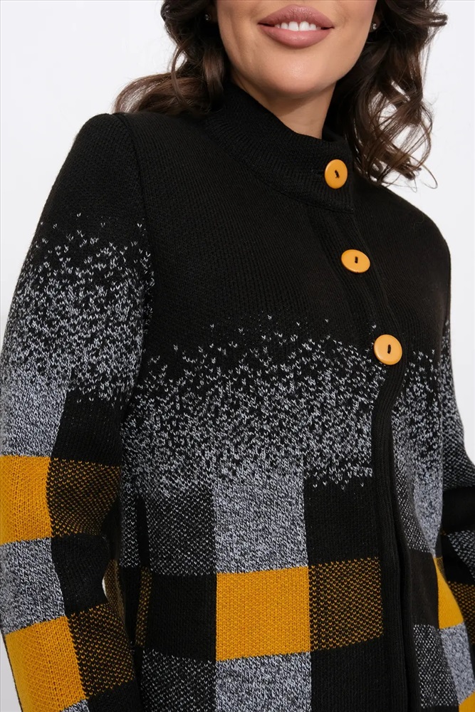Состав: 30%Шерсть,70%Пан Длина изделия: 88 см Длина рукава: длинный рукав 61 см Комплектация: нет Новизна: Хит продаж Сезон: демисезон Бренд: Злата Стиль ТН ВЭД: 6110309900 Женский эффектный вязанный кардиган с ассиметричным бортом. Воротник стойка. Кардиган на молнии по всей длине, с декоративными застежками- пуговицами по верху изделия. Рукава втачные длинные. Два прорезных кармана. Жаккардовое переплетение образует геометрический рисунок. Кардиган согреет вас в прохладный день и подарит ощущение невероятного комфорта. Комментарии к товару