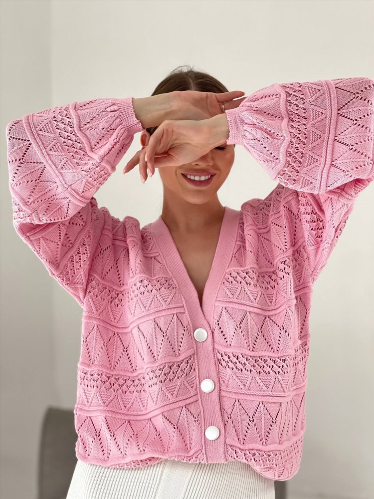 Кардиган KROSHE PREMIUM создан в ультрамодном стиле ажурной вязки, который позволяет сочетать женственность, нежность и комфорт. Премиальная хлопковая пряжа сделает вязаный кардиган невероятно мягким и приятным, красивый ажурный узор подчеркивает хрупкость и изящество, спущенные объемные рукава добавят шарм образу. Можно подобрать платье из коллекции COCCON, в тон или на контрасте.