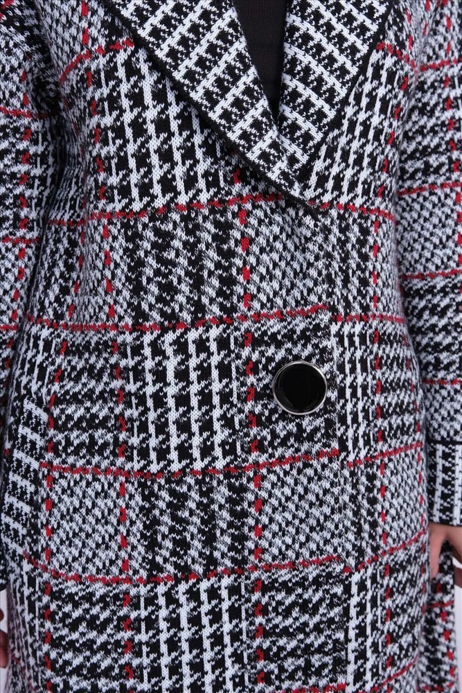 Состав: 10% Шерсть, 90% Пан Длина изделия: 85 см Длина рукава: длинный рукав 61 см Новизна: Распродажа Сезон: демисезон Бренд: Злата Стиль ТН ВЭД: 6110309900 Женский кардиган прямого силуэта длинной до колен с отложным воротником застегивающийся на потайные кнопки с одной декоративной крупной пуговицей. Вязанный кардиган с длинным рукавом, плечо спущенное .По низу рукава имеется отворачивающийся манжет. По бокам изделия симметрично расположены прорезные карманы. Изделие выполнено жаккардовым рисунком. Подходит для использования в демисезонный период. Комментарии к товару