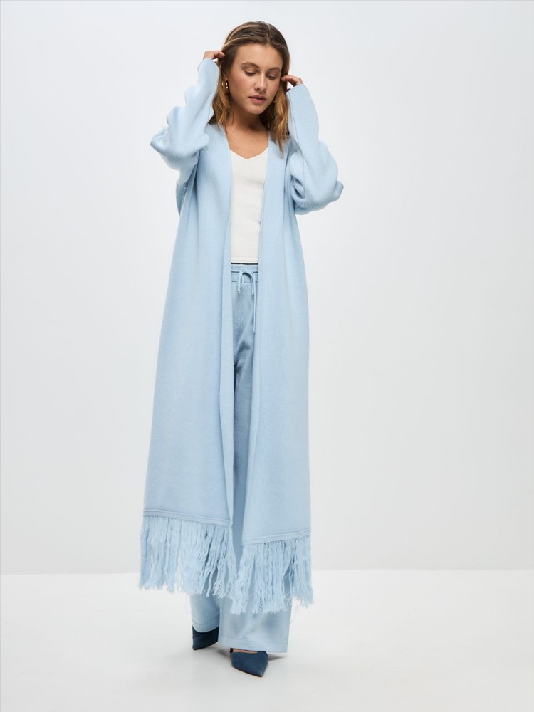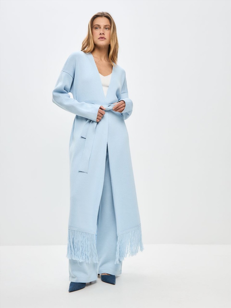 Вязаный кардиган BEVERLY PREMIUM с бахромой по краю, базовая модель с особенным элементом. Кардиган длинный, поэтому сможет дополнить любой образ весной и летом. В комплекте к кардигану мы связали плотный широкий пояс. Данная модель из капсульной коллекции, поэтому в тон можно подобрать и другие элементы гардероба. За исключением пудрогового цвета.
