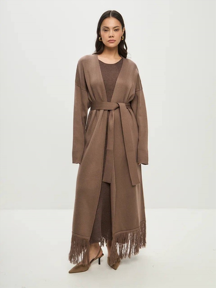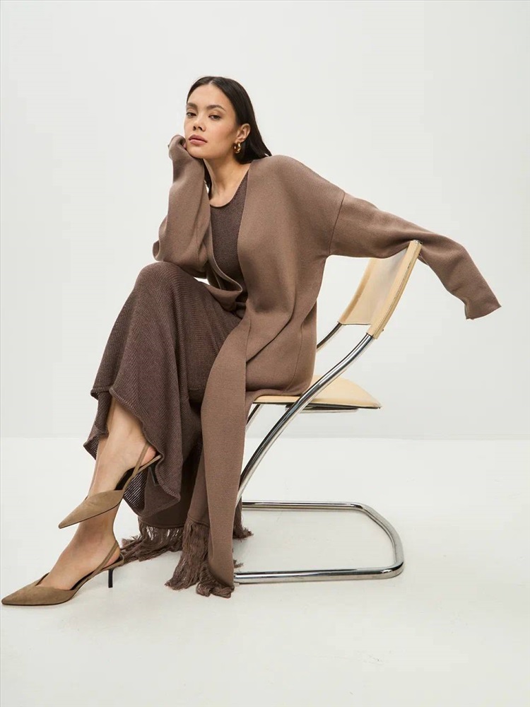 Состав: 50% хлопок, 50% вискоза Вязаный кардиган  BEVERLY PREMIUM  с бахромой по краю, базовая модель с особенным элементом. Кардиган длинный, поэтому сможет дополнить любой образ весной и летом. В комплекте к кардигану мы связали плотный широкий пояс. Данная модель из капсульной коллекции, поэтому в тон можно подобрать и другие элементы гардероба. За исключением пудрогового цвета.