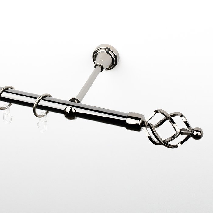 Карниз металлический стыкованный однорядный. Труба круглая, гладкая, с наконечниками.