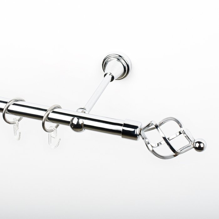 Карниз металлический стыкованный однорядный. Труба круглая, гладкая, с наконечниками.