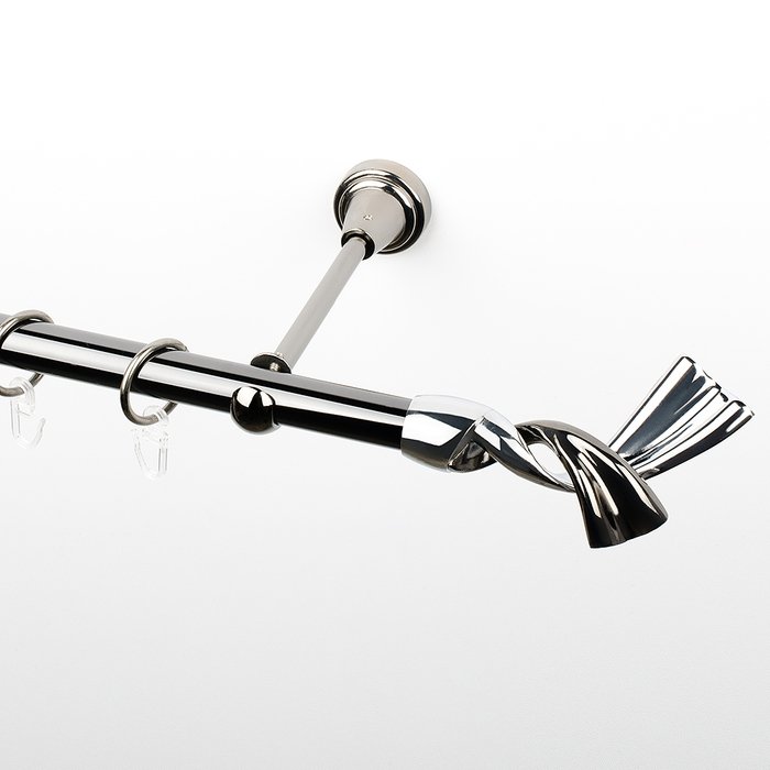 Карниз металлический стыкованный однорядный. Труба круглая, гладкая, с наконечниками. В комплект входит: Труба ø19 мм – 1 шт. Кронштейн 1-рядный ø19 мм – 2-3 шт. (в зависимости от длины карниза) Кольцо с крючком для карниза ø19 мм – 20-32 шт. (в зависимости от длины карниза) Наконечник «Дива» ø19 мм - 2 шт. Монтажный комплект – 1 шт. Комментарии к товару