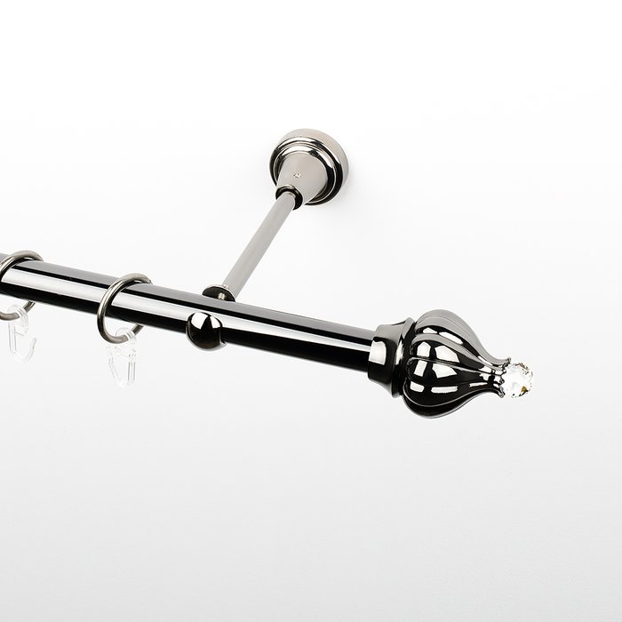 Карниз металлический стыкованный однорядный. Труба круглая, гладкая, с наконечниками. В комплект входит: Труба ø19 мм – 1 шт. Кронштейн 1-рядный ø19 мм – 2-3 шт. (в зависимости от длины карниза) Кольцо с крючком для карниза ø19 мм – 20-32 шт. (в зависимости от длины карниза) Наконечник «Тайбэй» ø19 мм - 2 шт. Монтажный комплект – 1 шт. Комментарии к товару