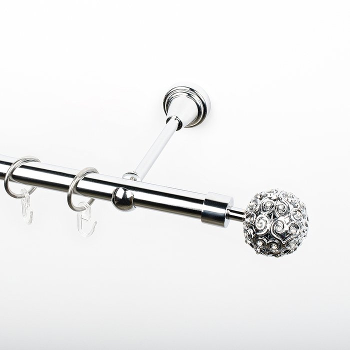 Карниз металлический стыкованный однорядный. Труба круглая, гладкая, с наконечниками. В комплект входит: Труба ø19 мм – 1 шт. Кронштейн 1-рядный ø19 мм – 2-3 шт. (в зависимости от длины карниза) Кольцо с крючком для карниза ø19 мм – 20-32 шт. (в зависимости от длины карниза) Наконечник «Тэтис» ø19 мм - 2 шт. Монтажный комплект – 1 шт. Комментарии к товару