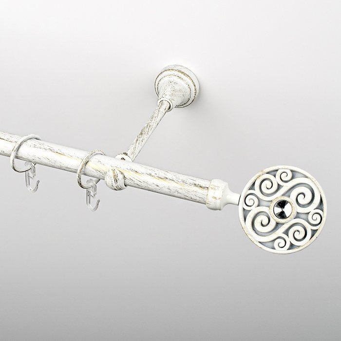 Карниз металлический стыкованный однорядный. Труба круглая, гладкая, с наконечниками. В комплект входит: Труба ø19 мм – 1 шт. Кронштейн 1-рядный ø19 мм – 2-3 шт. (в зависимости от длины карниза) Кольцо с крючком для карниза ø19 мм – 20-32 шт. (в зависимости от длины карниза) Наконечник «Вега» ø19 мм - 2 шт. Монтажный комплект – 1 шт. Комментарии к товару