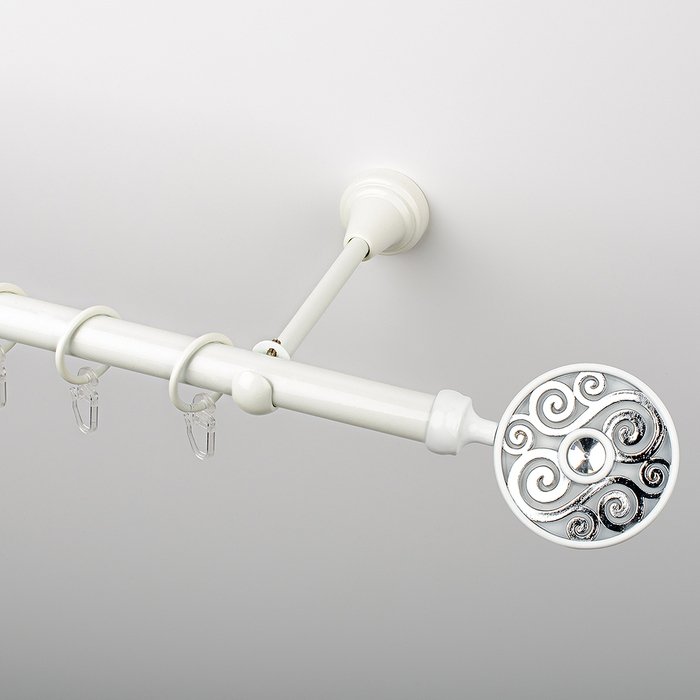 Карниз металлический стыкованный однорядный. Труба круглая, гладкая, с наконечниками.