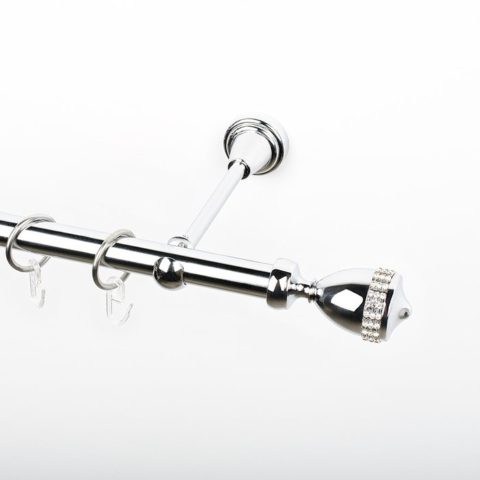 Карниз металлический стыкованный однорядный. Труба круглая, гладкая, с наконечниками.