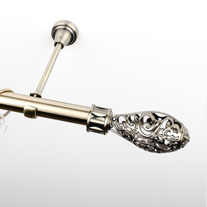 Карниз металлический стыкованный однорядный. Труба круглая, гладкая, с наконечниками. В комплект входит: Труба ø25 мм – 1 шт. Кронштейн 1-рядный ø25 мм – 2-3 шт. (в зависимости от длины карниза) Кольцо с крючком для карниза ø25 мм – 20-32 шт. (в зависимости от длины карниза) Наконечник «Версаль» ø25 мм - 2 шт. Монтажный комплект – 1 шт. Комментарии к товару