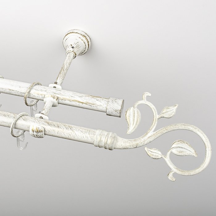 Карниз металлический стыкованный двухрядный. Труба круглая, гладкая, c наконечниками. В комплект входит: Труба ø19 мм – 2 шт. Кронштейн 2-х рядный ø19 мм – 2-3 шт. (в зависимости от длины карниза) Кольцо с крючком для карниза ø 19 мм – 40-64 шт. (в зависимости от длины карниза) Заглушка карниза – 2 шт. Наконечник «Флора» ø19 мм - 2 шт. Монтажный комплект – 1 шт. Комментарии к товару