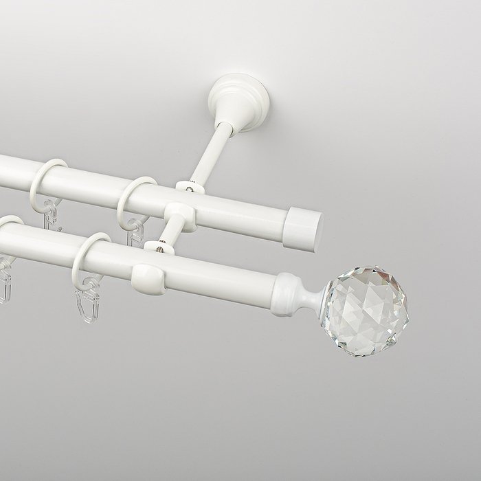 Карниз металлический стыкованный двухрядный. Труба круглая, гладкая, c наконечниками.