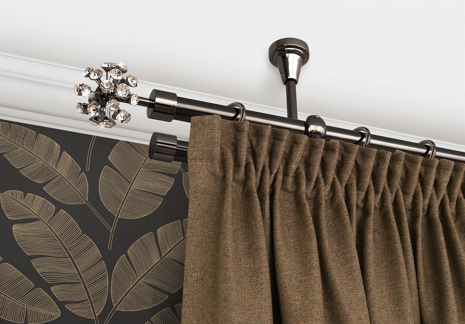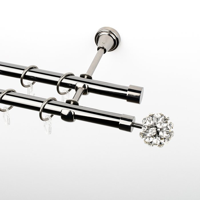 Карниз металлический стыкованный двухрядный. Труба круглая, гладкая, c наконечниками. В комплект входит: Труба ø19 мм – 2 шт. Кронштейн 2-х рядный ø19 мм – 2-3 шт. (в зависимости от длины карниза) Кольцо с крючком для карниза ø 19 мм – 40-64 шт. (в зависимости от длины карниза) Заглушка карниза – 2 шт. Наконечник «Лео» ø19 мм - 2 шт. Монтажный комплект – 1 шт. Комментарии к товару