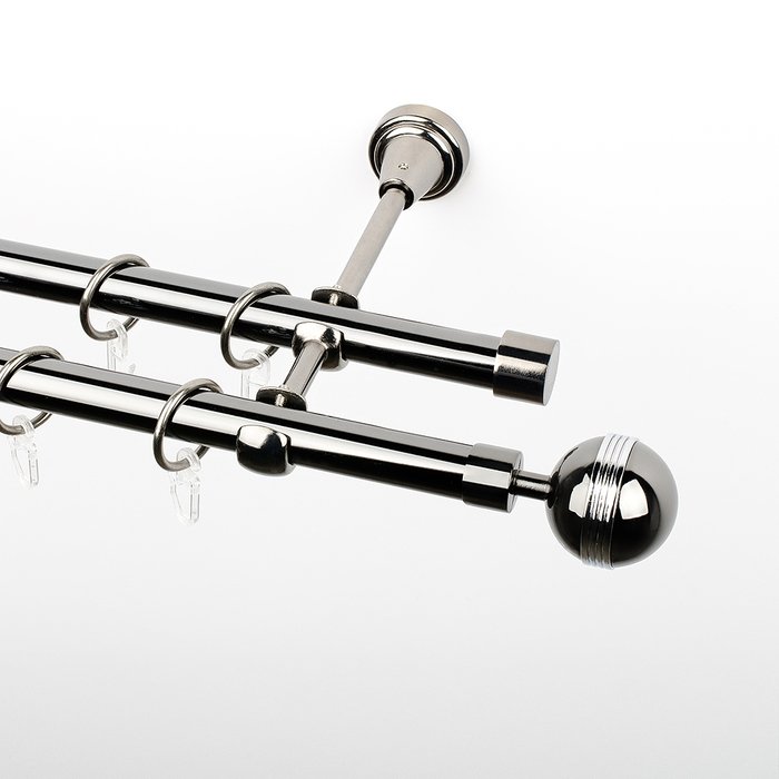 Карниз металлический стыкованный, 2-рядный "Орд", черный никель, гладкая труба, ø 19 мм (kn-422)