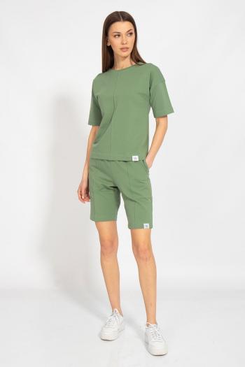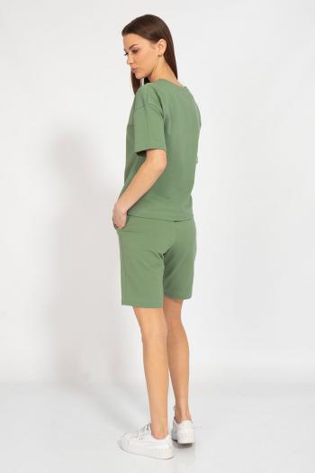 Костюм. Джемпер прилегающего силуэта с отделкой по переду. Ткань 2-х ниточный футер с изнанкой из хлопка, качество Пенье, плотность 265 г.м2. Шорты средней посадки с отделкой в виде канта по деталям переда и карманами в боковых швах.