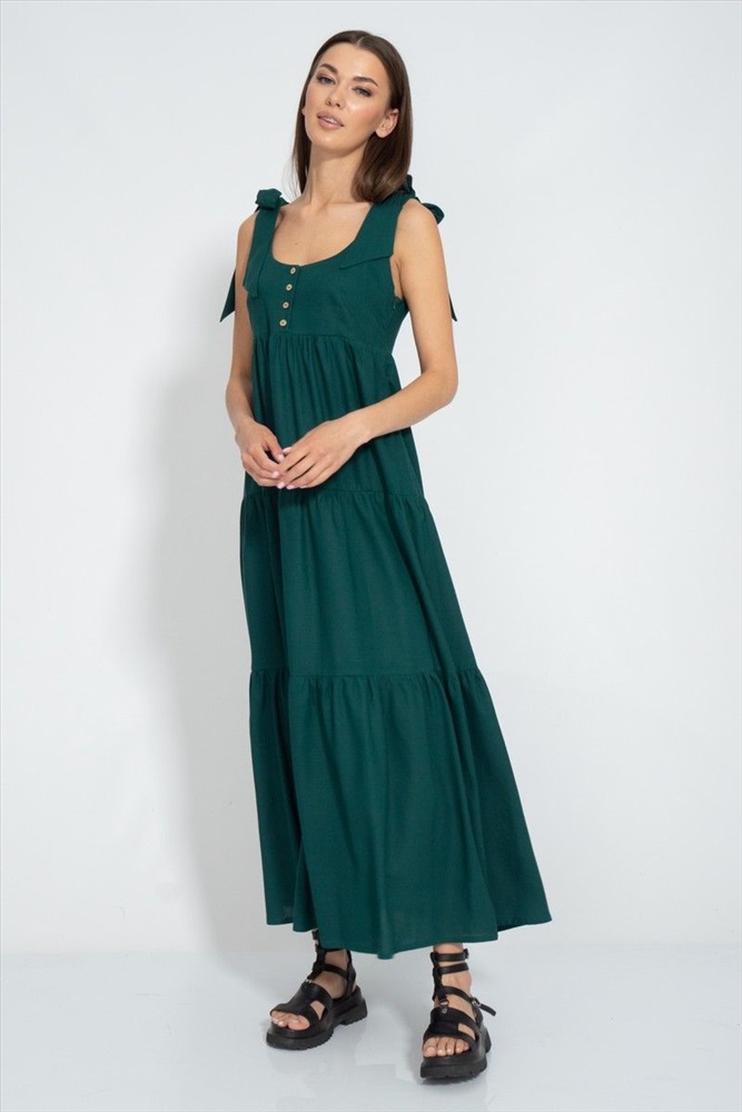 Платье удлиненное с воланами, из льна с вискозой - это стильное и комфортное платье для жаркого лета. Платье имеет прямой силуэт. Лен с вискозой - это натуральная ткань, которая хорошо дышит, приятна к телу. Платье можно сочетать с различными аксессуарами и обувью, создавая элегантные и романтические образы.