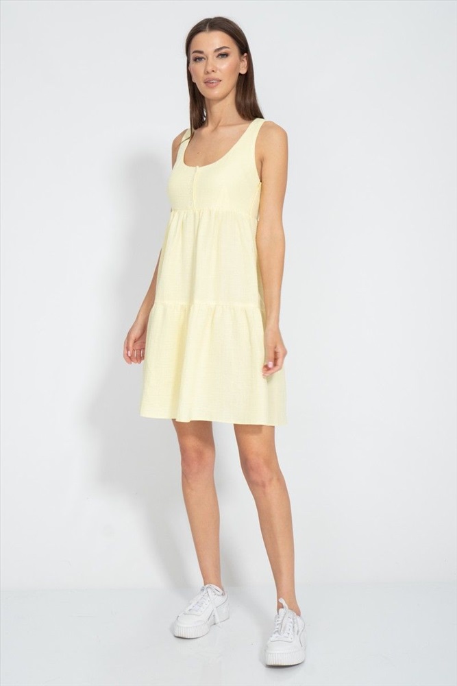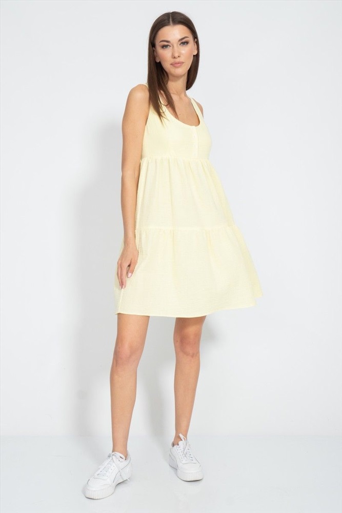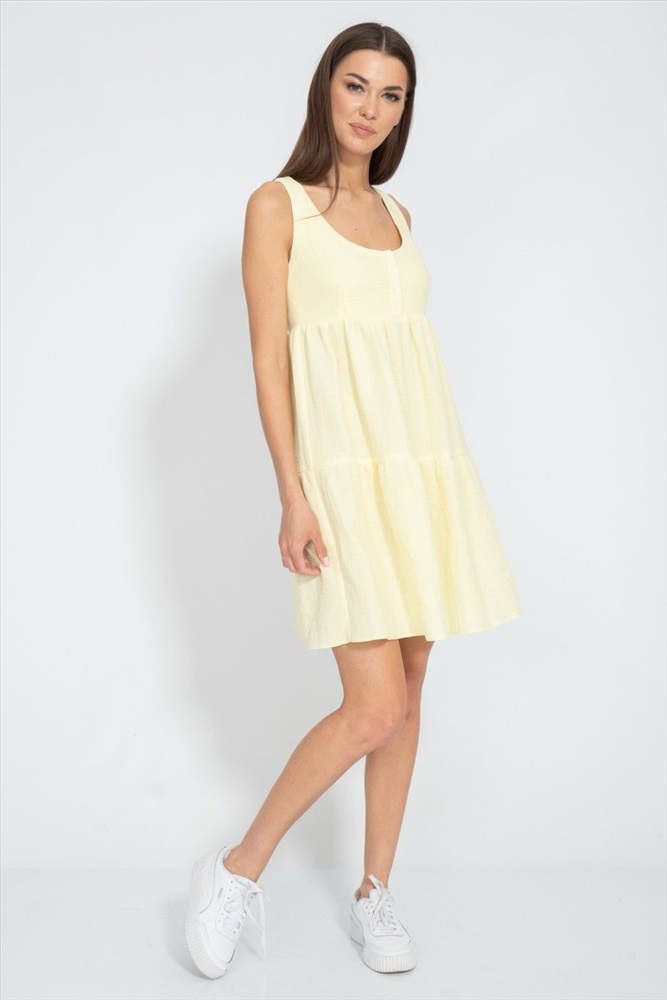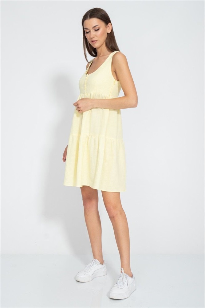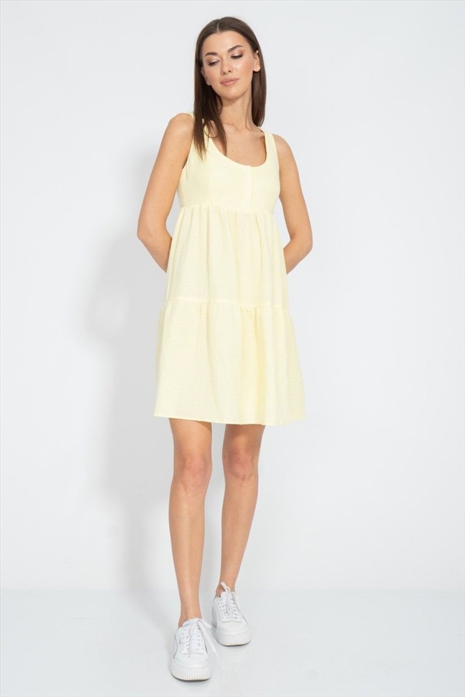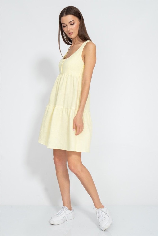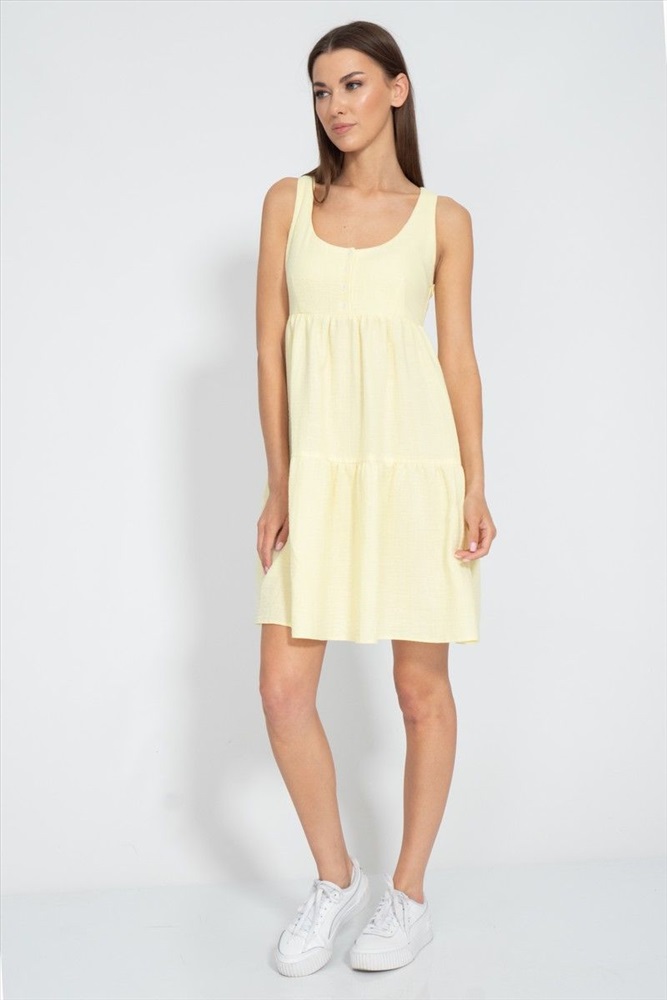 Страна производитель: Республика Беларусь Комплектация: Сарафан Сезон: Лето Коллекция: Лето, Лето 2023 Стиль: На каждый день Цвет: желтый Материал: хлопок, текстиль Состав: 100% хлопок Рост: 164 см Описание: Платье короткое с воланами из муслина - это воздушное и женственное платье для летнего сезона. Платье декорировано воланами по низу, они придают ему романтичность и игривость. Муслин - это легкая, воздушная ткань, которая хорошо дышит, не мнется и приятна к телу. Платье короткое с воланами можно носить с босоножками, балетками или сапогами, а также с разными украшениями и головными уборами. Комментарии к товару