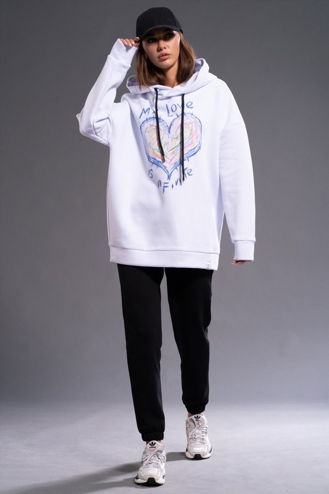 Костюм худи и брюки. Худи с принтом является настоящим привлекательным фокусом. Оно добавляет этому изделию неподражаемый вид и делает его неповторимым. Брюки с зауженным прилегающим силуэтом подчеркивают твою фигуру и придают образу элегантности. Низ брюк обработан резинкой, обеспечивая надежную фиксацию.