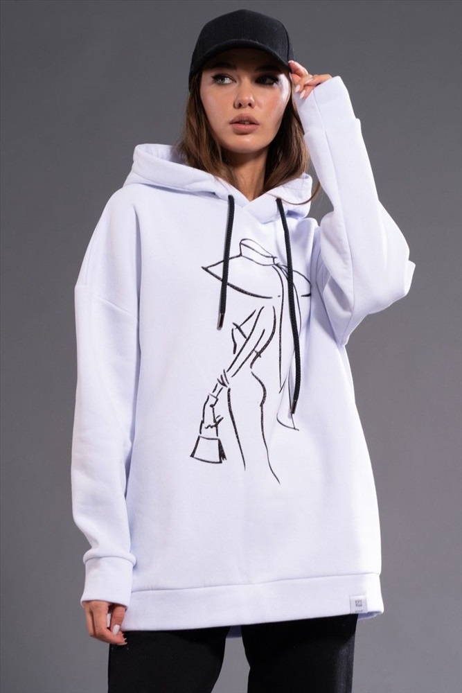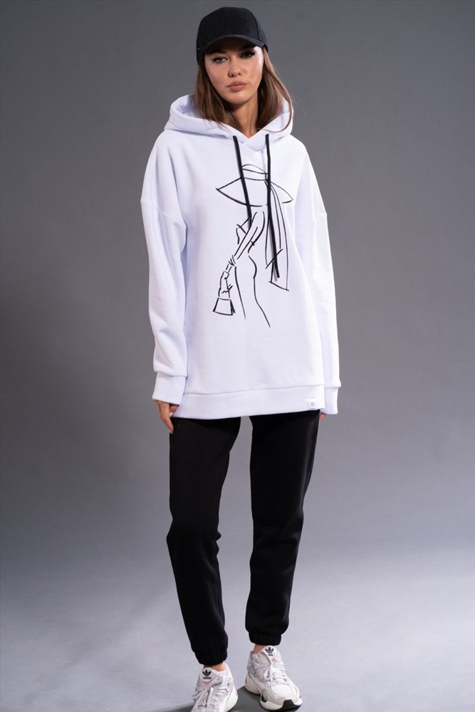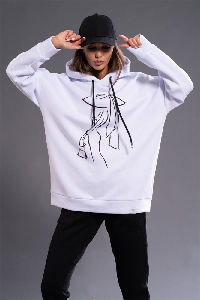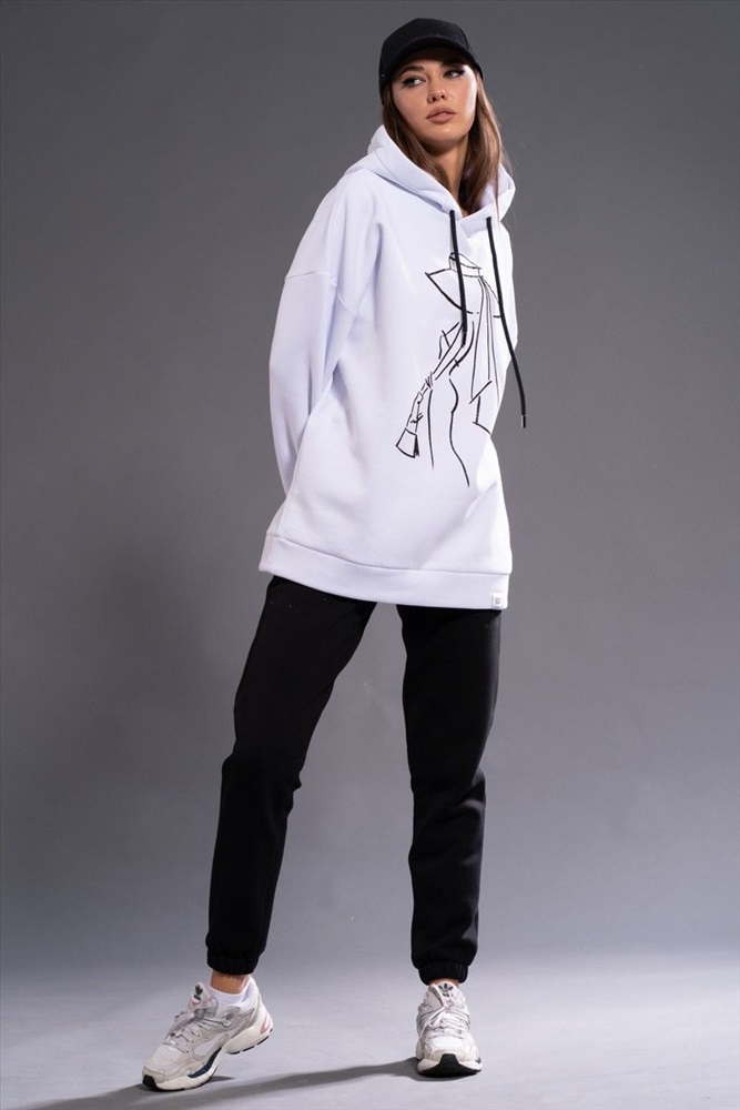 Костюм худи и брюки. Худи с принтом является настоящим привлекательным фокусом. Оно добавляет этому изделию неподражаемый вид и делает его неповторимым. Брюки с зауженным прилегающим силуэтом подчеркивают твою фигуру и придают образу элегантности. Низ брюк обработан резинкой, обеспечивая надежную фиксацию.