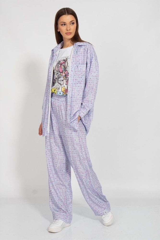 Страна производитель: Республика Беларусь Комплектация: Брюки, Рубашка Сезон: Лето Коллекция: Лето, Лето 2023 Стиль: На каждый день Цвет: голубой Материал: текстиль, вискоза Состав: 100% вискоза Рост: 164 см Описание: Костюм из штапеля, состоит из брюк и рубашки - это легкая и прохладная одежда для летнего сезона. Штапель - это воздушная ткань из отрезков хлопковых и вискозных волокон. Она отличается мягкой фактурой, яркостью и стойкостью цвета 1. Костюм из штапеля - это отличный выбор для тех, кто ценит комфорт и качество. Ткань штапель обеспечивает максимальную мягкость и приятные тактильные свойства. Костюм легкий и прочный, что позволяет свободно двигаться и не ограничивает движения. Комментарии к товару