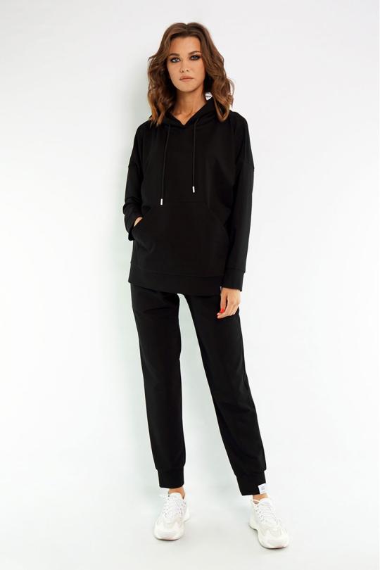 Цвет: черный. Костюм оверсайз с брюками средней посадки с карманами в боковых швах. Обработка низа брюк манжета. Ткань френч терри (2-х ниточный футер) с невероятно нежным внутренним слоем, качество Пенье, плотность 235 г.м2