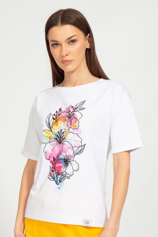 Джемпер свободного кроя. Удлиненный рукав, с подворотом. Принт методом термопереноса, цифровая печать. Ткань кулирная гладь, качество Пенье, плотность 200 г.м2.