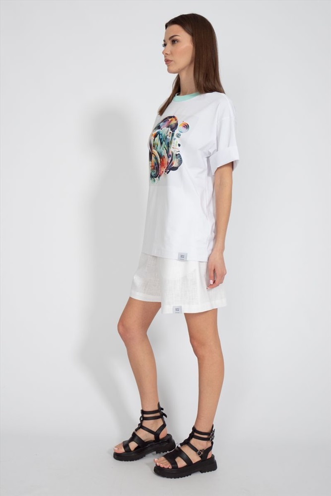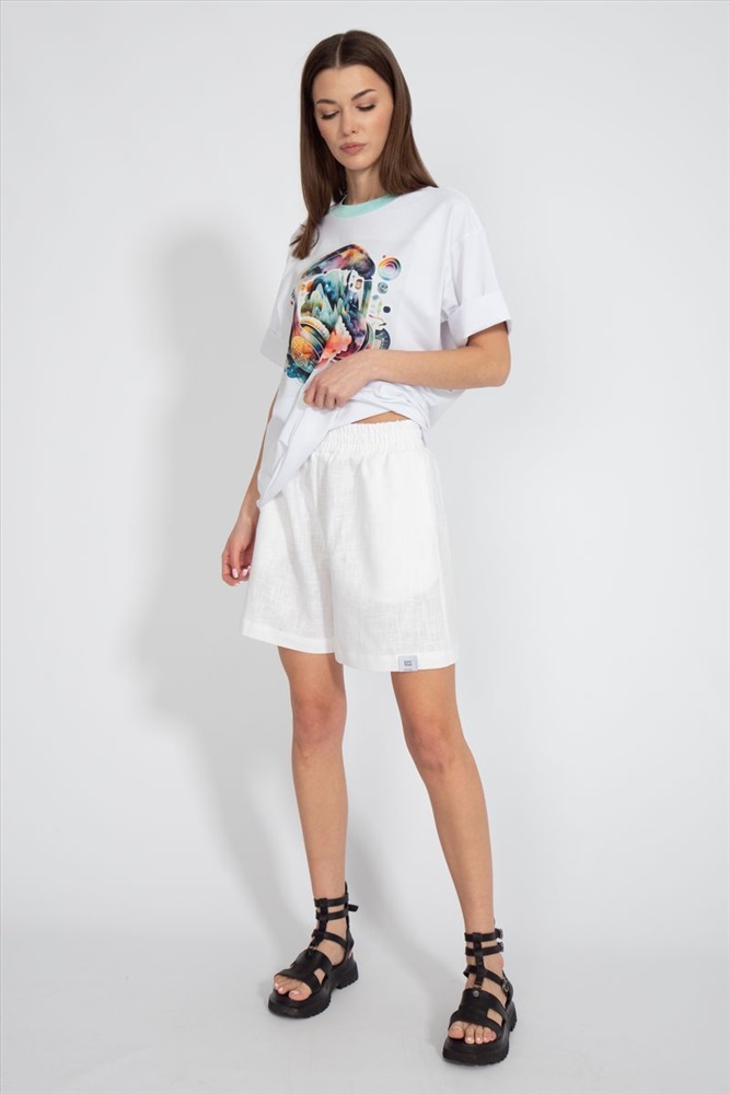 Производитель: Kivviwear Страна производитель: Республика Беларусь Комплектация: Футболка Сезон: Лето Коллекция: Лето, Лето 2023 Стиль: На каждый день Цвет: белый Материал: трикотаж, хлопок Состав: 92% хлопок, 8% эластан Рост: 164 см