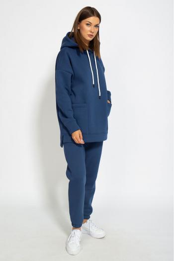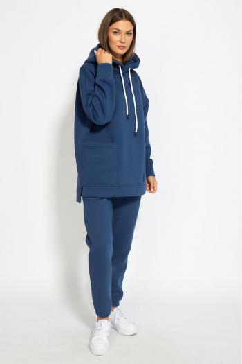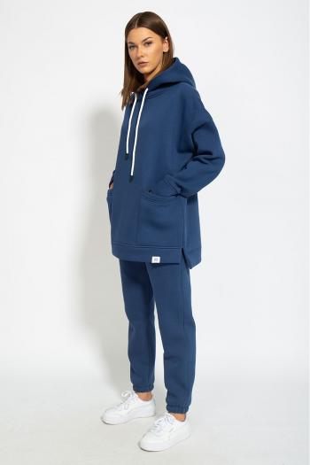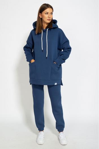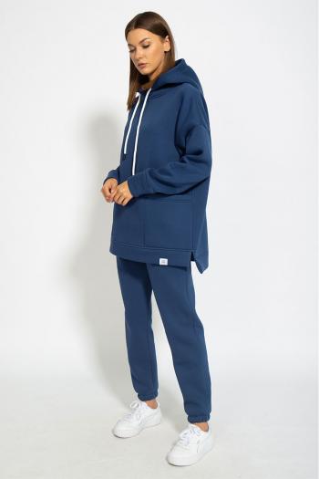 Костюм ОВЕРСАЙСЗ, утепленный на флисе. Худи Oversize модели 4057 с капюшоном на подкладке из основной ткани, с боковыми накладными карманами, с боковыми разрезами по низу изделия, удлиненная спинка. Брюки модели 4056 средней посадки, зауженные к низу, с карманами в боковых швах. Обработка низа брюк - резинка. Ткань футер (3-х ниточный) с внутренним слоем утепленным начесом, качество Пенье, плотность 395 г.м2.